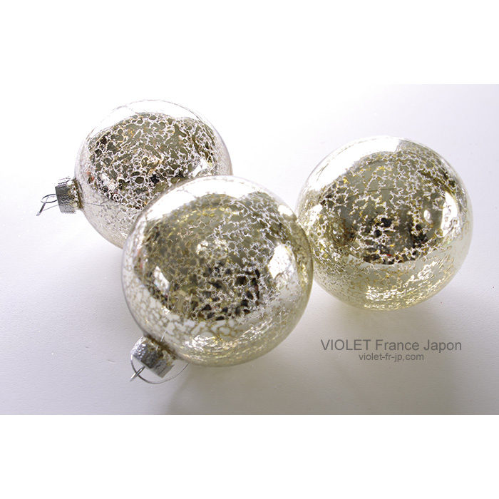 クリアなガラスボールにシャンパンシルバーの箔をペイントしたデコグラスボールオーナメント。