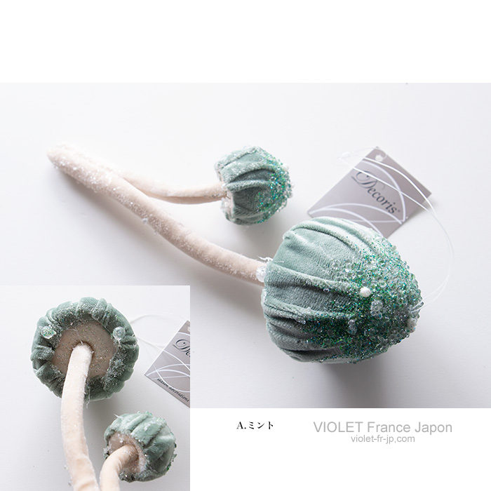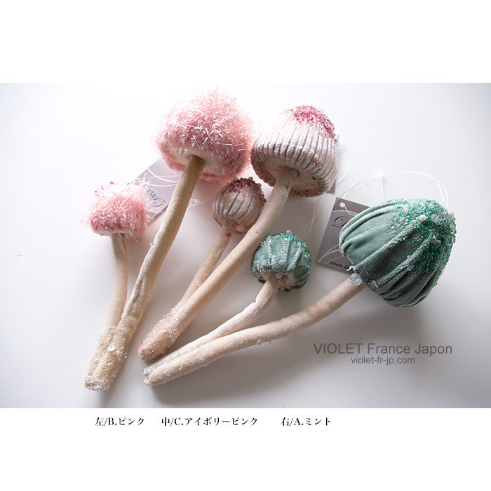 とにかく色も形も可愛すぎるオーナメント。マッシュルームの軸の部分にはワイヤーが入ってるので、形を変えれます。