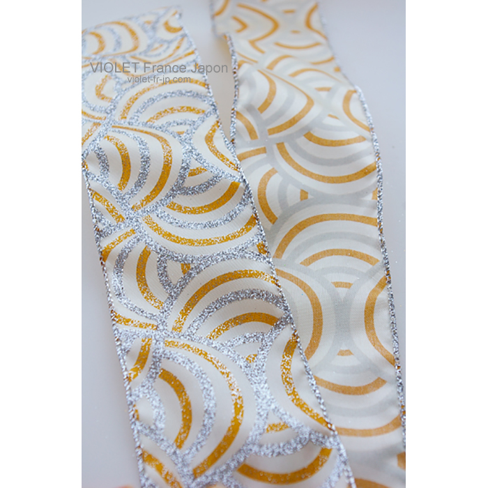 やさしいホワイトにゴールドとシルバーのラインが美しい上品なおリボン。
