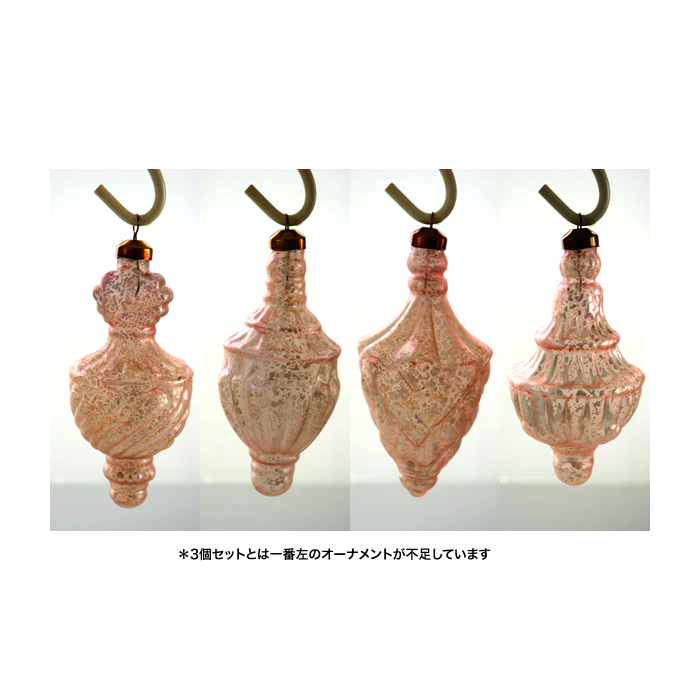 マットなガラスにパールの塗装を内側から吹き付けてあります。ヨーロピアンな4デザインのオーナメントです。