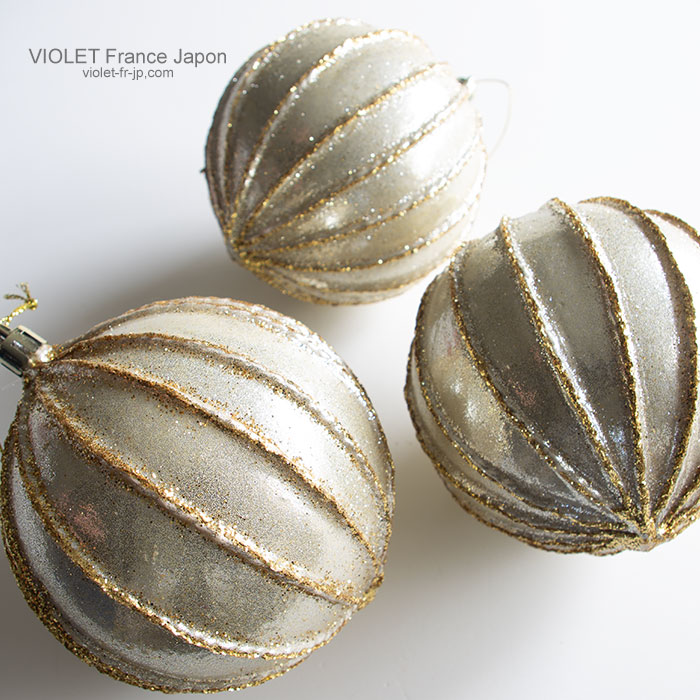 シャンパン色のクリスマスオーナメントボールは、ゴールドでもシルバーでも、ホワイトカラーにも使いやすい万能カラーなので、迷った時にお助けカラーになりますよ。