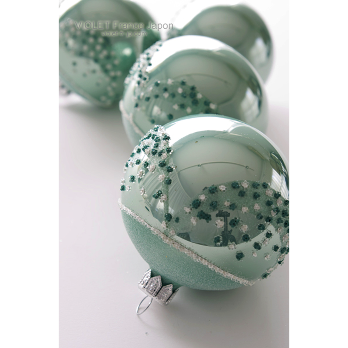 S-NL-3014 オランダ デコガラスボールオーナメント ユーカリグリーン Φ8cm 6個セット