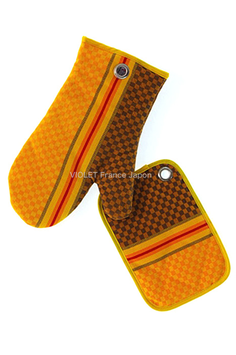 T-A-KG0005 Tissage Moutet ミトン&ポットホルダー heart of collection yellow/brown