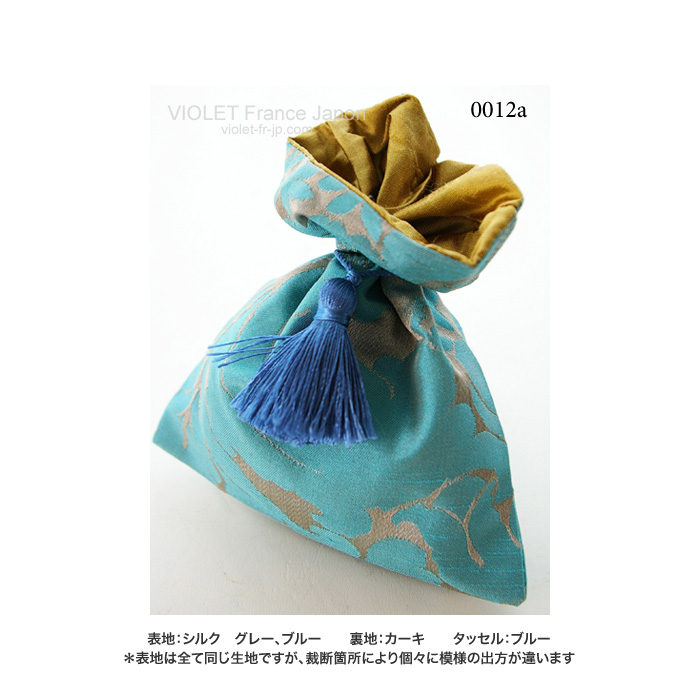 小さなタッセルがついてますので巾着の口をクルクルと巻いてお使い下さいませ。