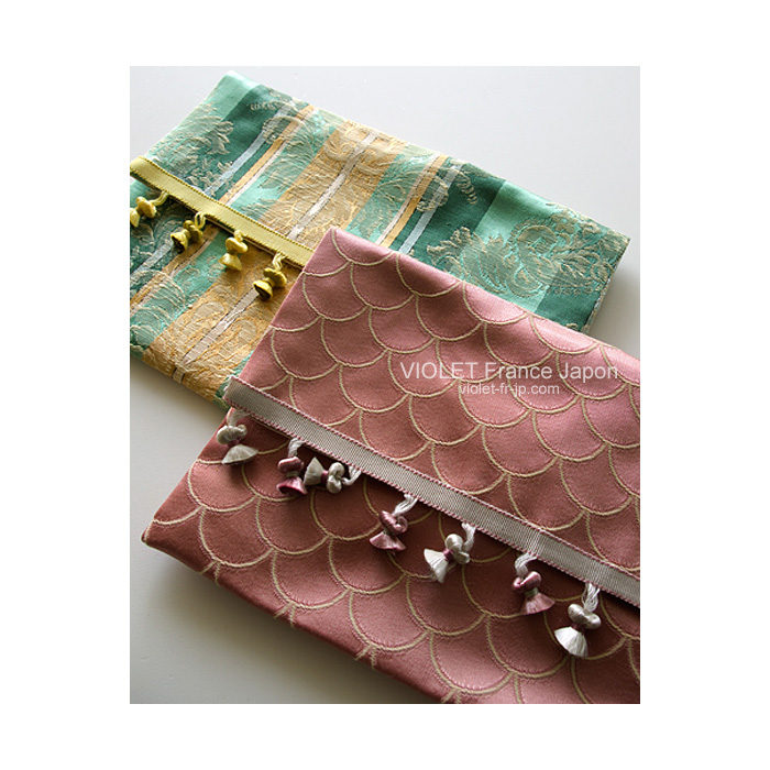 フランスのシルクやコットンを使って、パリのマダムがボタンや裏側の生地やフリンジなどをコーディネートしてハンドメイドで一つ一つ丁寧に作られています。